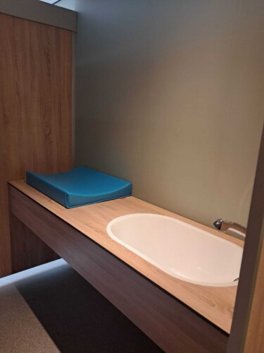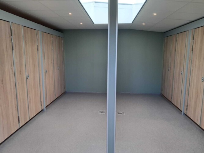 Het moderne en verwarmde sanitairgebouw is ruim opgezet en van alle gemakken voorzien. Aan één zijde vindt u nette, aparte toiletruimtes voor dames en heren. Aan de andere zijde bevinden zich zeven douches, waaronder een ruime familiedouche met babybad en aankleedkussen, ideaal voor gezinnen met jonge kinderen. Eén van de douches beschikt bovendien over een wastafel en kan gebruikt worden als aparte wascabine.